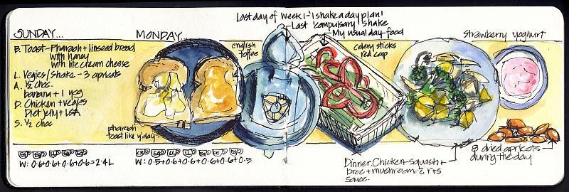 Food Diary: Repetitive Project June 16, 2008 | Leave your thoughts 230 Share A6LandscapeFood Diary 2008Food SketchingSketching Diet Another day of my food diary… much the same food… this will get quite repetitive after a while. Though I suppose the challenge is for me to find more innovative ways to visually record what I eat. Next post Previous post