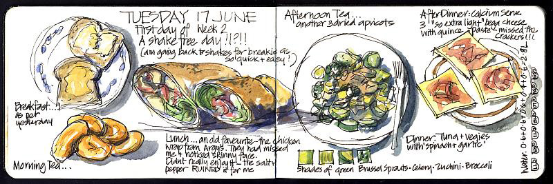 Food diary: Unplanned page June 17, 2008 | 2 Comments 206 Share A6LandscapeFood Diary 2008Food SketchingSketching Diet Didn’t really plan this page – just developed through the day. I am finding this so much fun – I don’t know why food makes such good sketching material? Next post Previous post