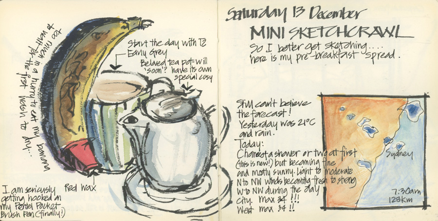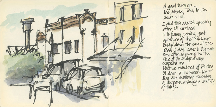 I have started to go along to sketching outings with the Sydney Sketch Club and today was a training for the next World Wide Sketchcrawl on Jan 10….