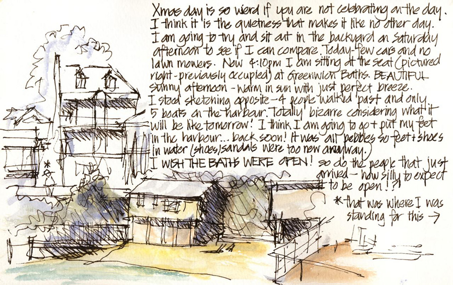 All the clouds of this morning disappeared so I decided to get out this afternoon for a quick sketch and to see what the harbour is like on Christmas Day…