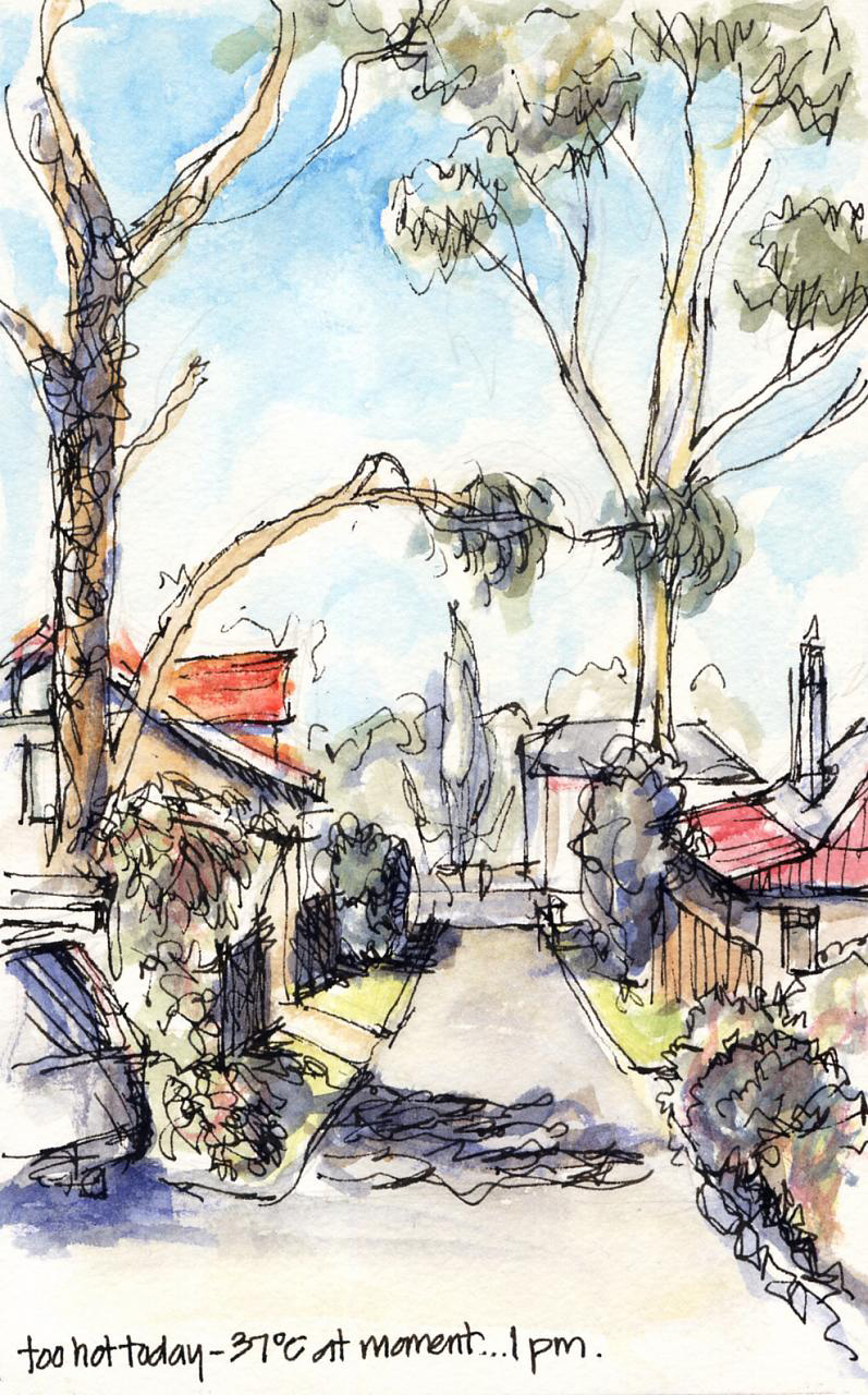 Charming sketch, and I’m dreaming about heat here in the frozen north! I was thinking about Sydney last night. We were watching the documentary Man on Wire, about Phillipe Petit, the man who walked wire places like Sydney Harbor and the World Trade Centers.