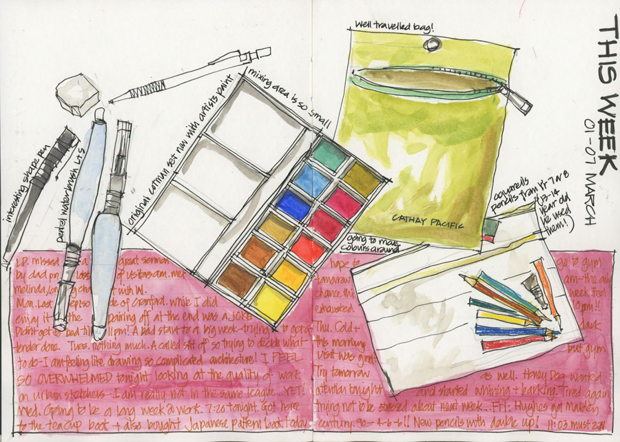 And I made this page into a weekly spread adding random notes in the pink rectangle. Why pink? Who knows!