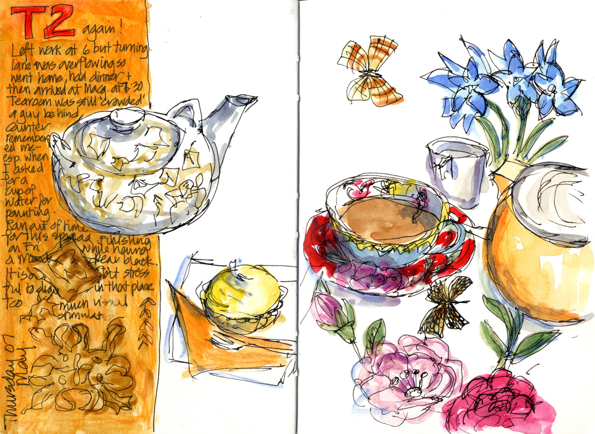 Here is my page that I did last night at my favourite tearoom. I didn’t quite finish the painting as they closed their doors and I thought I better leave. So I added the rest of the paint tonight.