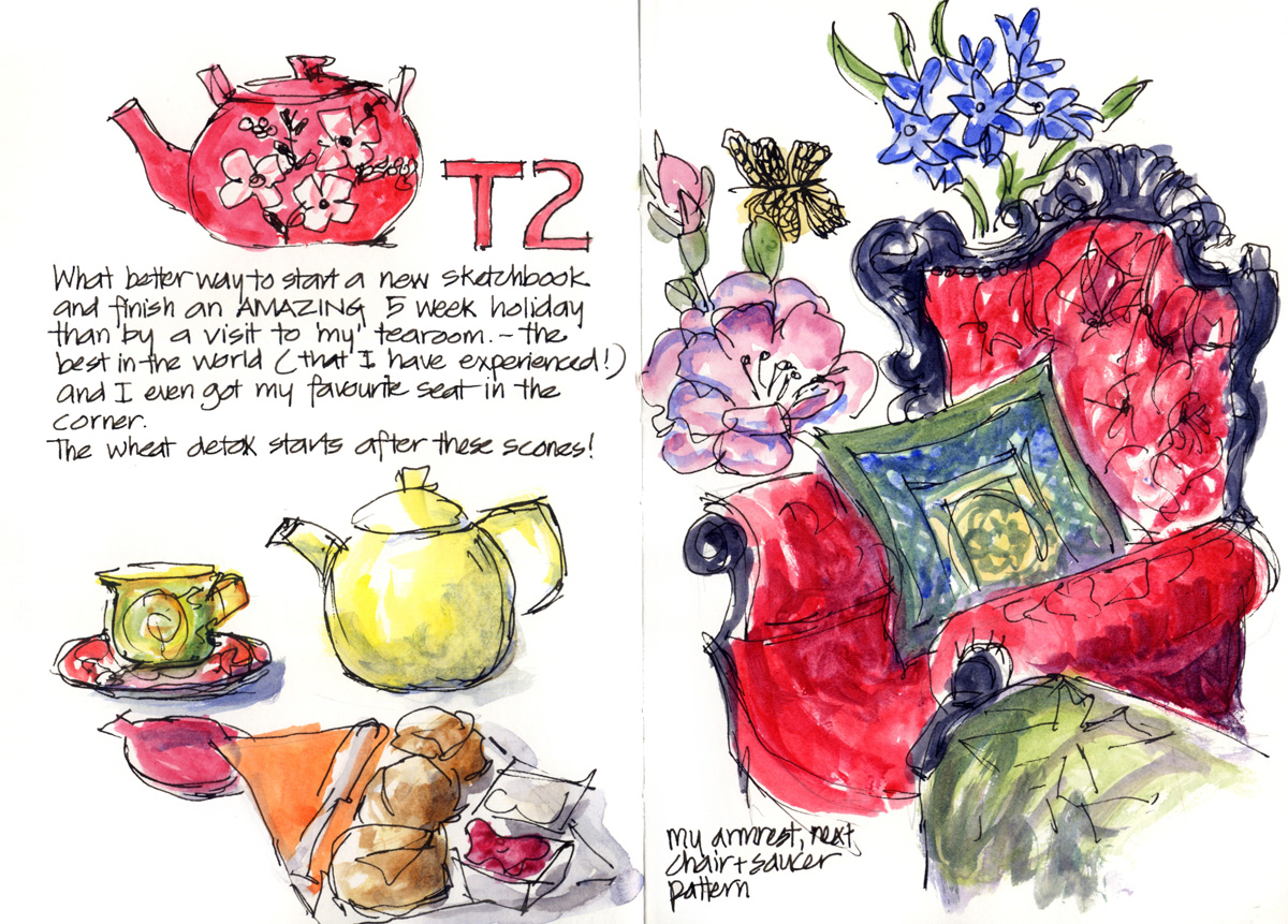 Brand new sketchbook and as I had to go out and get a few things, just couldn’t resist visiting my favourite tearoom. It was sensational and I now appreciate how really special it is!