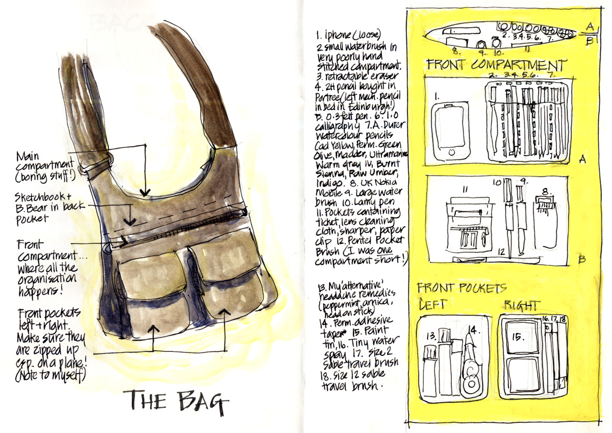 Brilliant idea to have a really smart bag for your 'holiday kit' . I'll be studying this in a great deal of detail, and might even make my own! I've already planned to make a large gusseted bag to carry my pop-up fishing tent, sketching stool and larger format pad for when I'm out all day in all weathers!