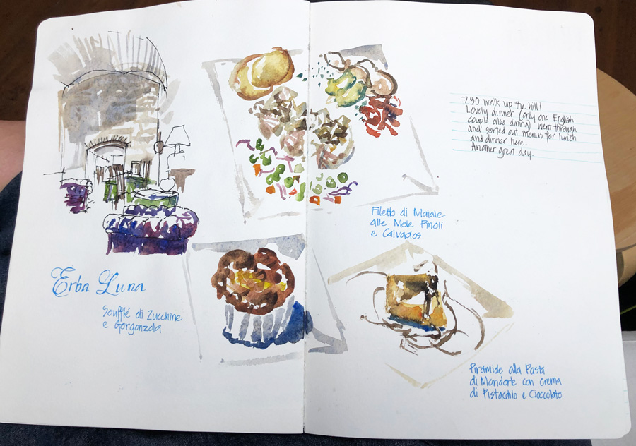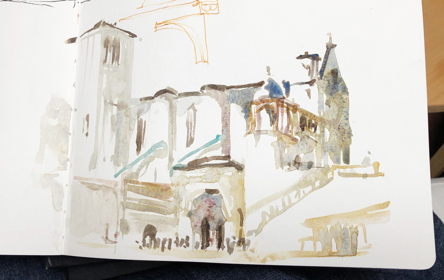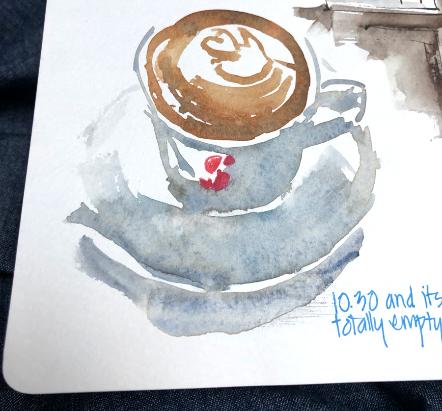 Here are a few direct watercolour/paint-only sketches which I have done so far in this trip! It’s definitely easier to do some subject matter (coffee cups and food, landscapes or a single building) rather than more complex scenes.