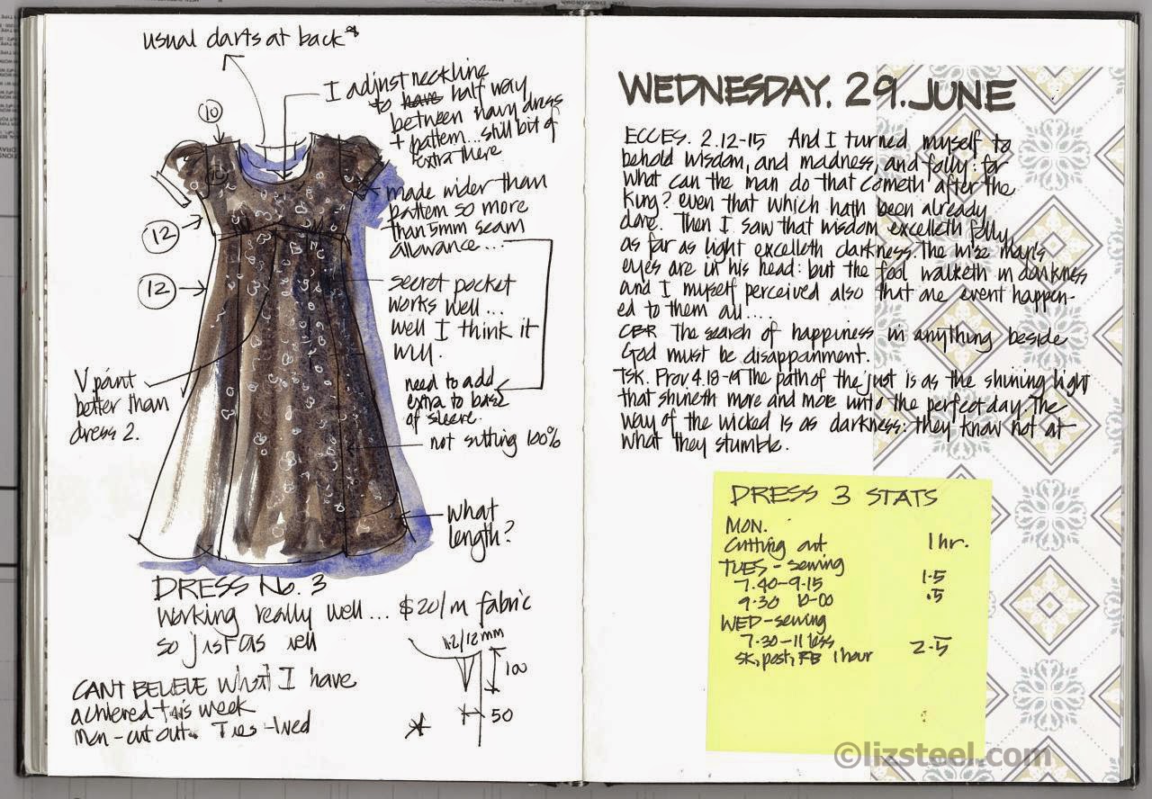 Nearly every overseas trip for the past 7 years, I have made a new dress for the occasion. (I sew cool comfortable cotton dresses with secret pockets). For those of you that did Sketchbook Skool ….
