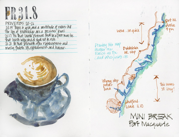 As I mentioned a few weeks ago, I have been sketching quite a lot in the past month and a half since I returned from my big trip. The main reason for this is that I’ve been out and about a lot, teaching and doing a lot of teaching prep. I also had a mini break Friday-Monday up at Port Macquarie with my parents. So I just want to simply share my sketches from this long weekend.