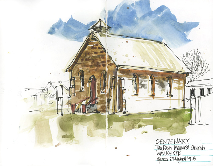 In the afternoon I went with my parents to a Centenary Celebration of the church where my father grew up. I have lots of special memories of worshipping in this building with my family (especially my Nanna and Great Aunt – I miss them a lot). We arrived early so I could do a quick sketch of the exterior from the car.