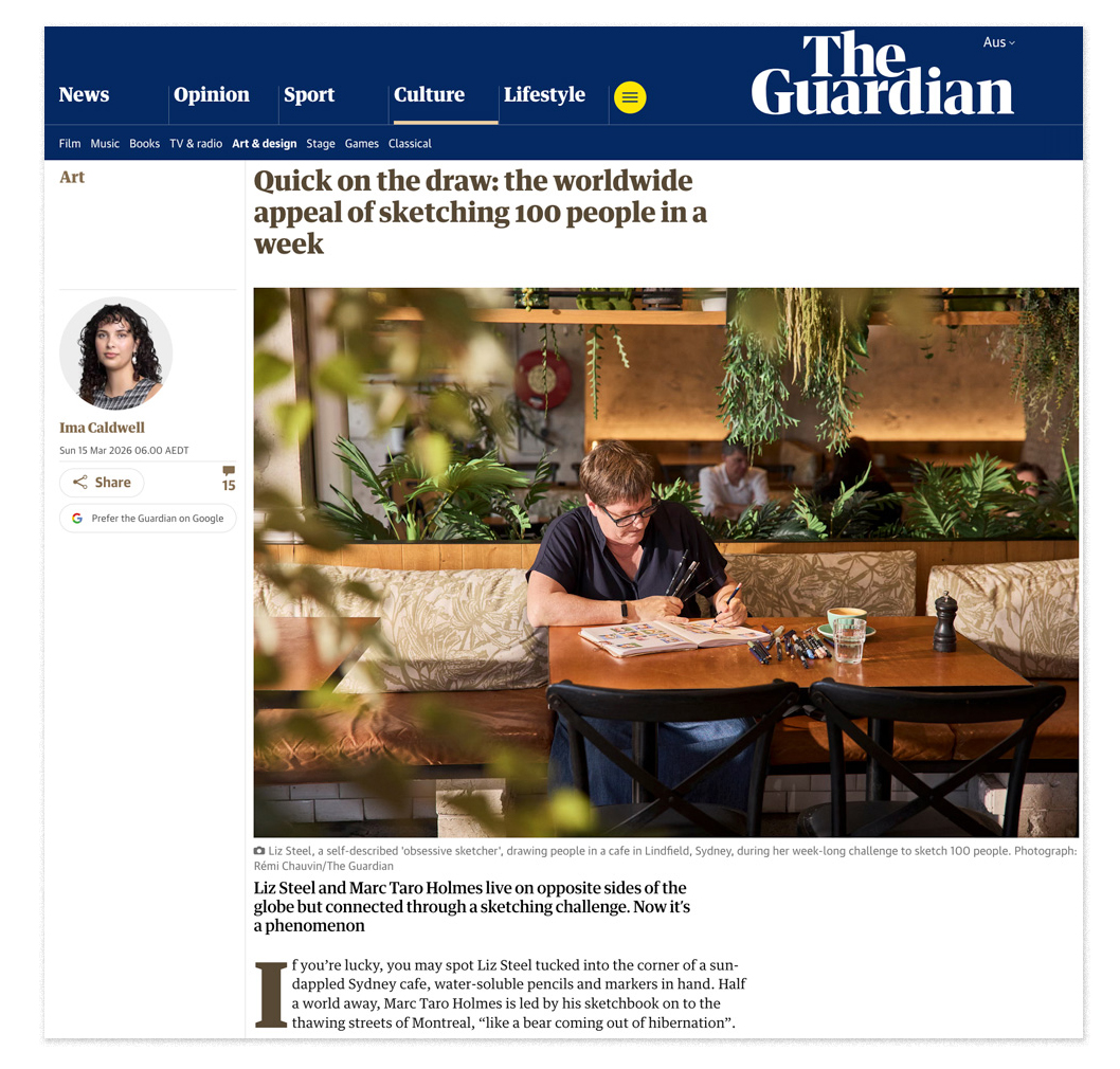 I was contacted by The Guardian Newspaper on Monday morning about writing an article on the challenge and this meant that I did more sketching than usual early in the week so I could send them the finished image on Thursday.