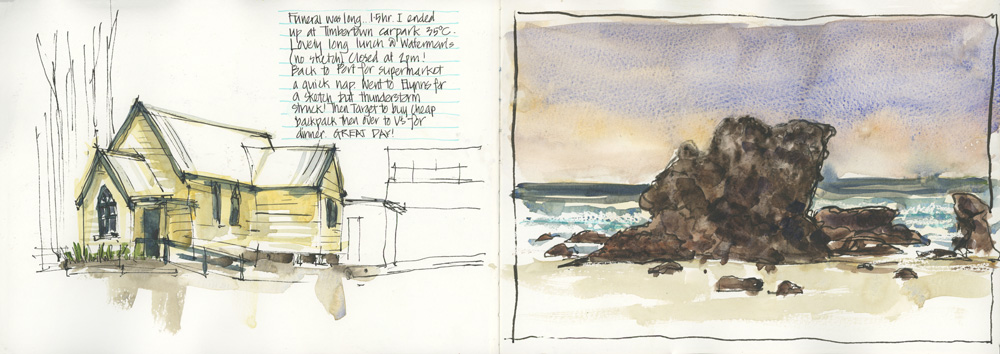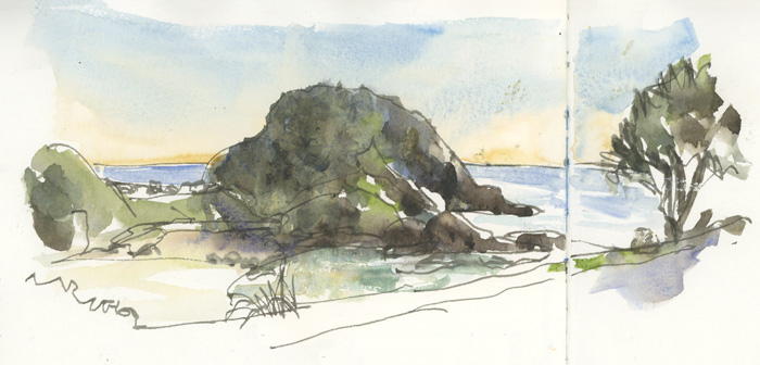 I didn’t have an agenda for my sketching. The goal was simply to do whatever I felt like. Sketching the beaches of Port Macquarie with their dramatic volcanic rocks has been a very special experience for me in other the years, so I knew that I wanted to do some beach sketching. But I wasn’t going to put any pressure on myself. In the end I used up half of an A4 Moleskine watercolour sketchbook, so that was a nice result from a very relaxed week.
