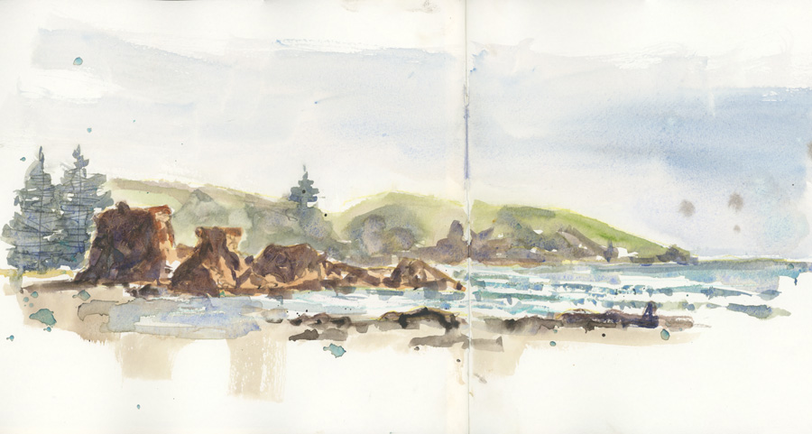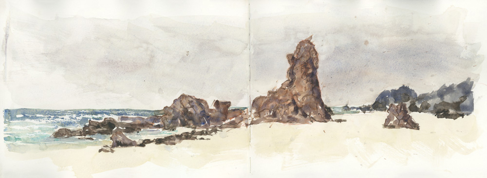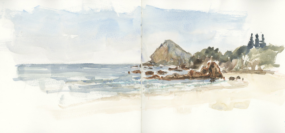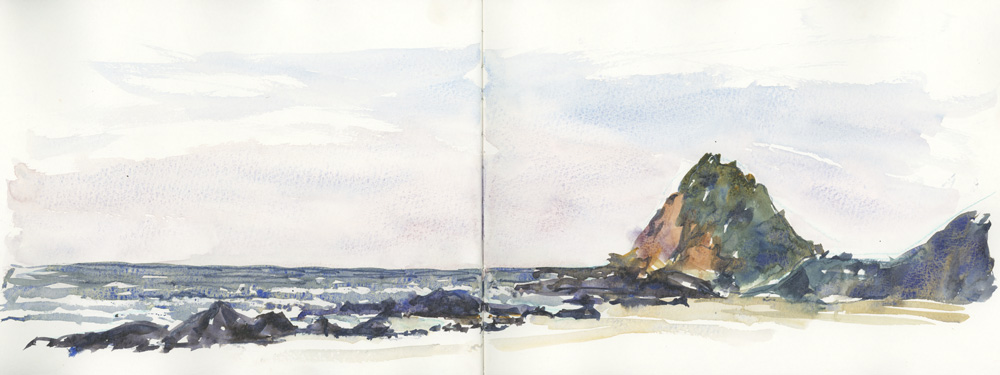 I had a wonderful time and it was a real mental break and my first true holiday (vacation) in four years – since Norfolk Island. I had a lot of fun brushing up on my ocean and rock sketching skills… and was just getting into the groove when it was time to come home. Hopefully I’ll get back there again before too long.
