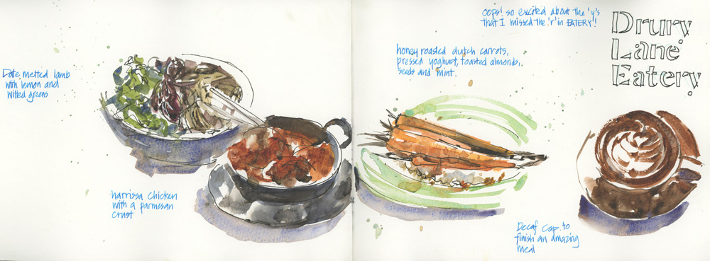All my sketches from the week are included below. I have generally included the full spread and then if appropriate, a cropped version of an individual sketch. Double page spreads in an A4 landscape sketchbook look great in real life, but don’t translate very well to a blog, so click on images to view them a little larger.