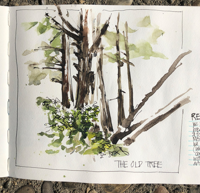 Gay took us out for a short hike to visit the old tree in the forest. Here is my warmup sketch.