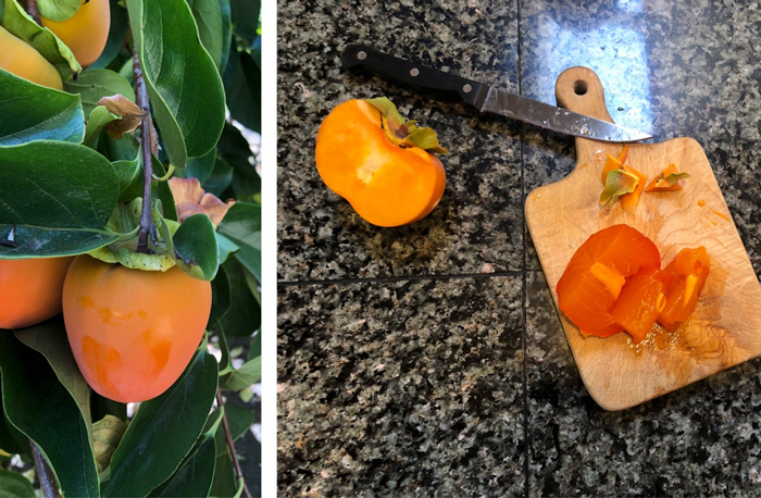 Gay (and her daughter who lives nearby) have some persimmon orchards. We found a ripe one for me to taste (I’ve never eaten one before!)