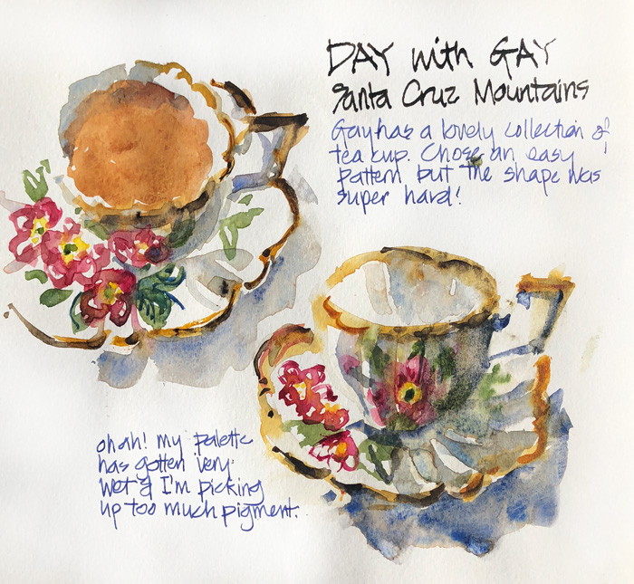 We started with morning tea and I choose one of the ‘hardest to sketch’ teacups from Gay’s collection.