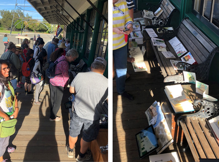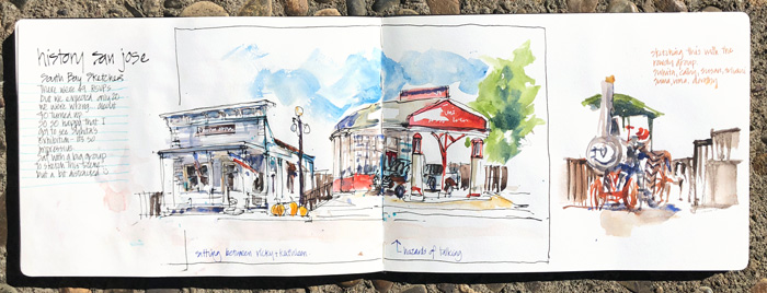 The South Bay Sketchers admin team organised a sketchmeet at the San Jose History Park. It’s a great spot for a sketching event, but the highlight for me was seeing Suhita’s ‘Sign of the Times’ exhibition and getting a copy of her book.