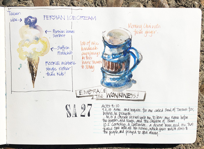 The next morning I sketched one of Suhita’s sister’s mugs while sipping my chai tea.