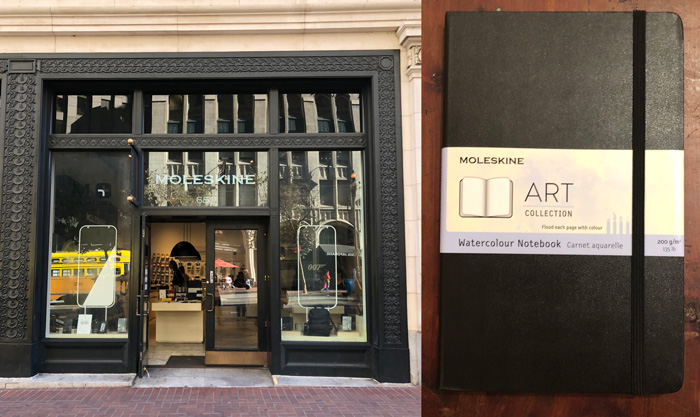 After SFMOMA we headed to the new Moleskine store where I bought one of the new-ish portrait A5 watercolour sketchbooks. Yes! many of us have wanted this book in this format and Moleskine have finally started making them.