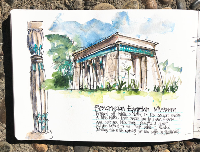 Suhita’s daughter was performing in a concert, so I was dropped off at the Rosicrucian Egyptian Museum for some quiet sketching for an hour or so.
