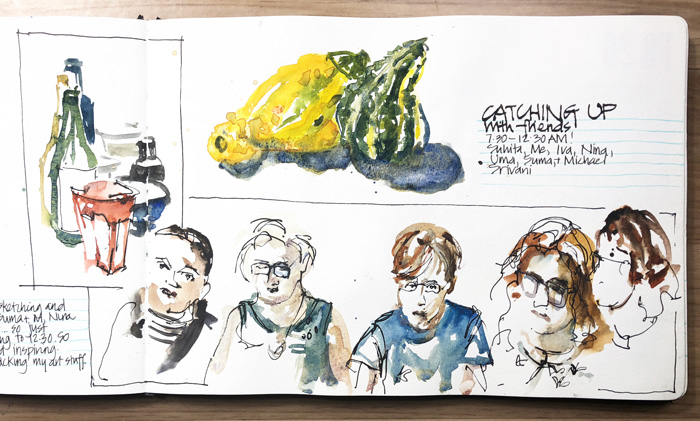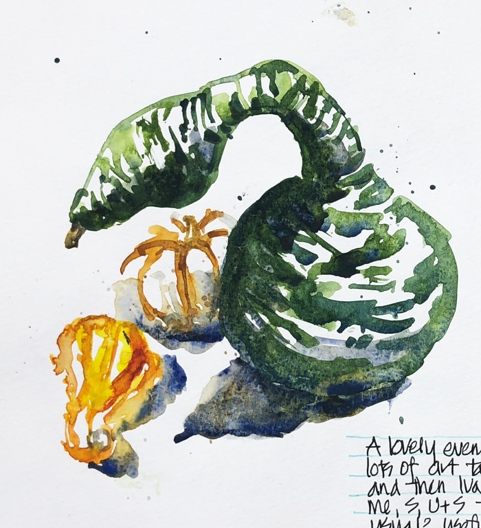 After our sketching of San Jose Victorians (refer to the end of this article) Suhita organised a few friends over for an evening of catching up and sketching. I had hoped to sketch some pumpkins this trip but these gourds were the closest I got to doing a seasonal still life. (Note: it’s spring in Australia and we don’t have the big pumpkin/harvest/fall thing that happens in the States.)