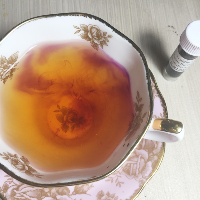 If you follow me on Instagram you might have seen that I had a little accident and managed to get ink on my hands, and a drop landed in the tea (the tea was just a prop – I wasn’t drinking from it). Check out how the ink separated into purple. I will definitely have to load up a pen and try this out.