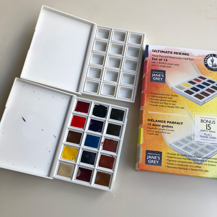 I received a sample of these half pan sets for free, but do not receive any payment from Daniel Smith (royalties, affiliate sales etc) from these kits. I am not a DS brand ambassador and love using other brands of paint as well! I’m simply excited that they have decided to make these sets and honoured that they choose to use my selections for one of them.