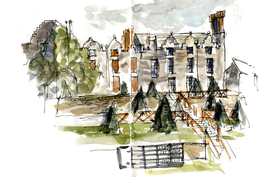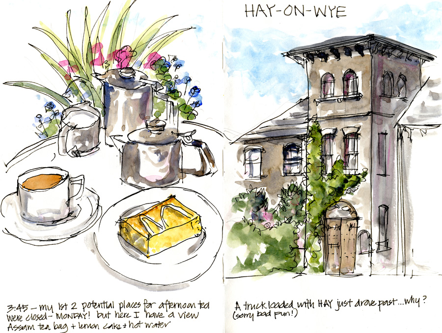 Hay on Wye is the second hand book capital – I could easily spend a few days here but with only a few hours the number of bookstores is somewhat overwhelming that I decided it was just better to sketch. This is the Hay Castle Bookshop – the quirkiest bookshop and it is really quite sad to see any book treated like they are here – junky books for 50p paperback, 1GBP for hardback in the outdoors.