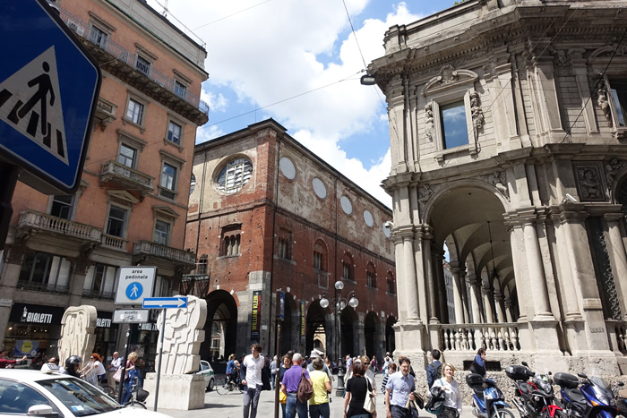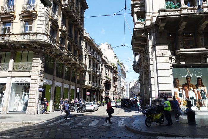 After a long haul flight I find it takes a day for my eye hand coordination to get back to normal (out of sync like my sleep – though I felt great today) I often play safe with subject matter till I get in the groove. Not today! Complex street view with the Duomo in background.