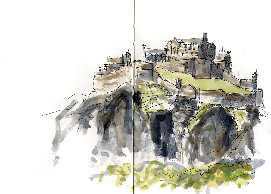 The darkness of the rock that the castle is built on must have made an impact on me. This sketch now reminds me of how the first visit to Edinburgh in 2000 – after driving up through England and visit small quaint villages, I initially found the city almost oppressive – the tall building too dark and dirty and stone and that it took me half a day to get used to it. No so this trip – I just totally fell in love with this amazing city!