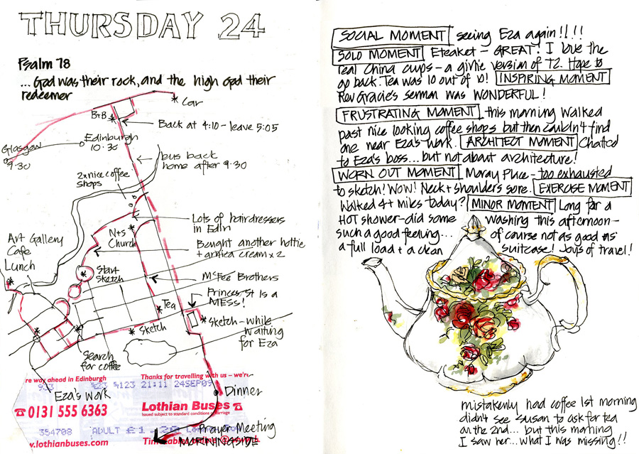 Getting excited about the next day in my trip – yet another Urban Sketcher to meet and hoping to go back to that tearoom again… Plus meeting a famous Scottish knitting guru!