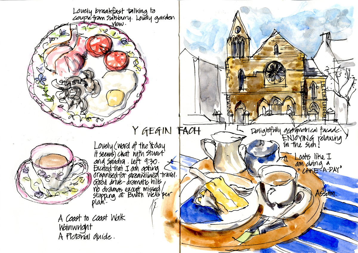 I think that I should post my first sketch of the full cooked breakfast… More cake and tea with a architectural sketch. I could do this every day!?! (stay tuned to see if I did in fact do this every day on my trip!?!?)