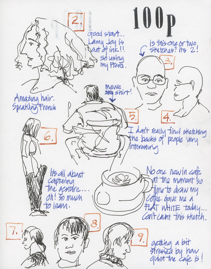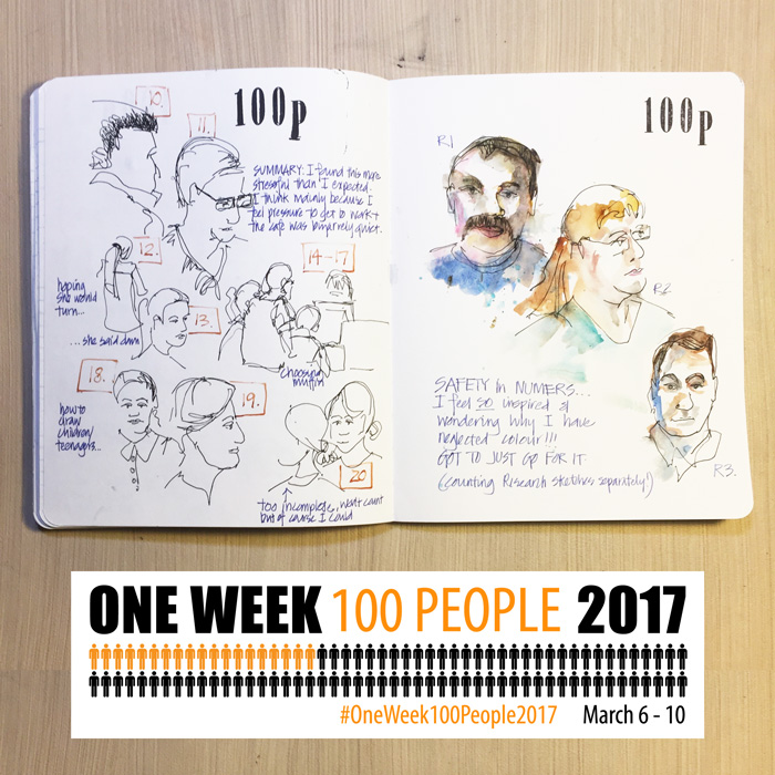 Day 1 completed – I hit my target of 20 people per day and I’m already feeling the benefits of this challenge. Due to the focus of sketching this week, I will make my updates brief, so here goes.