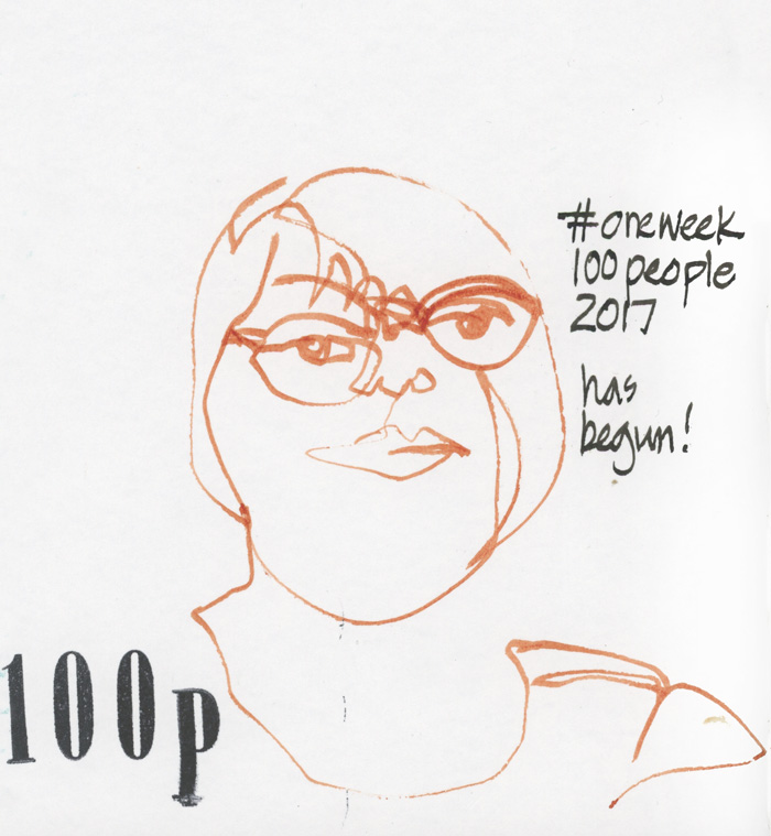 I thought I would set the tone for the week by doing a blind contour selfie – using a continuous line (not taking my pen off the page) and not looking at the page. The key to this week is to go for it, mix it up and have fun! I am definitely not expecting 100 masterpieces as I am still very much a learner when it comes to drawing people. But I’m going to have lots of fun – as I did doing this one!