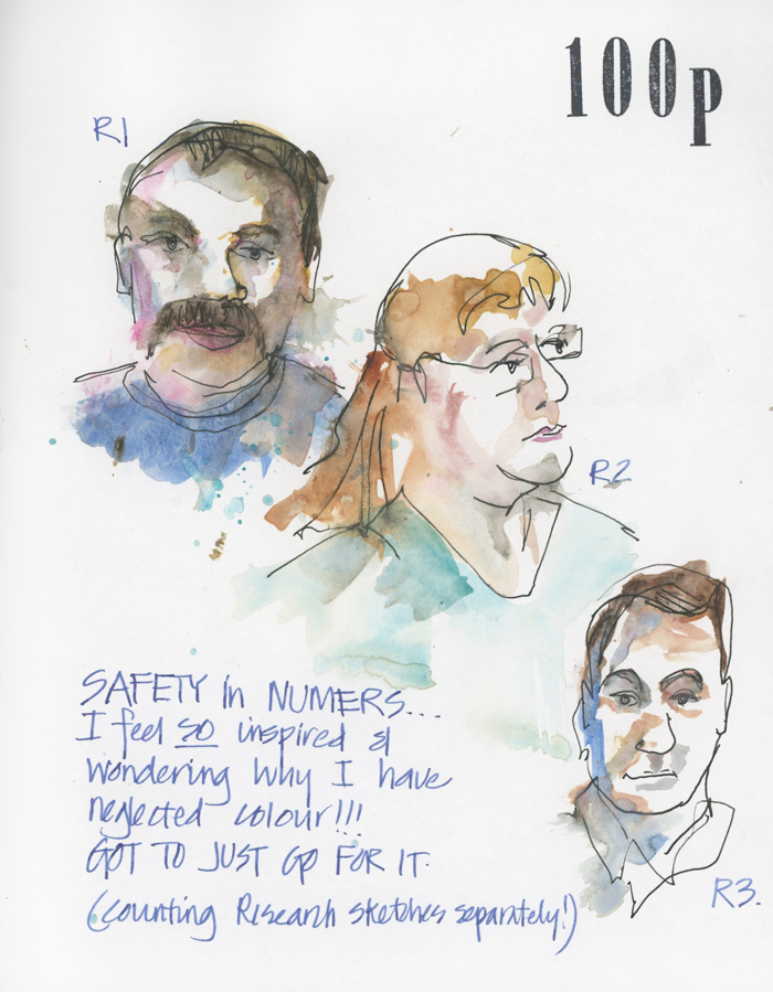 At night I decided to do a few research sketches with the intention of adding colour tomorrow or the day after. I am counting these separately as I want the 100 to be all done on location.