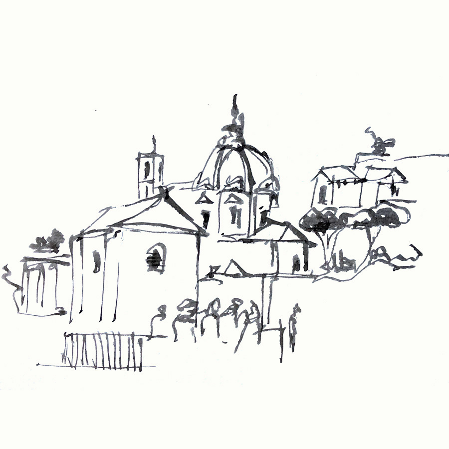 Just a little bit down the road is another centrally planned (circular/ellipse shaped) church by Borromini’s rival Bernini. No time to stop and sketch.
