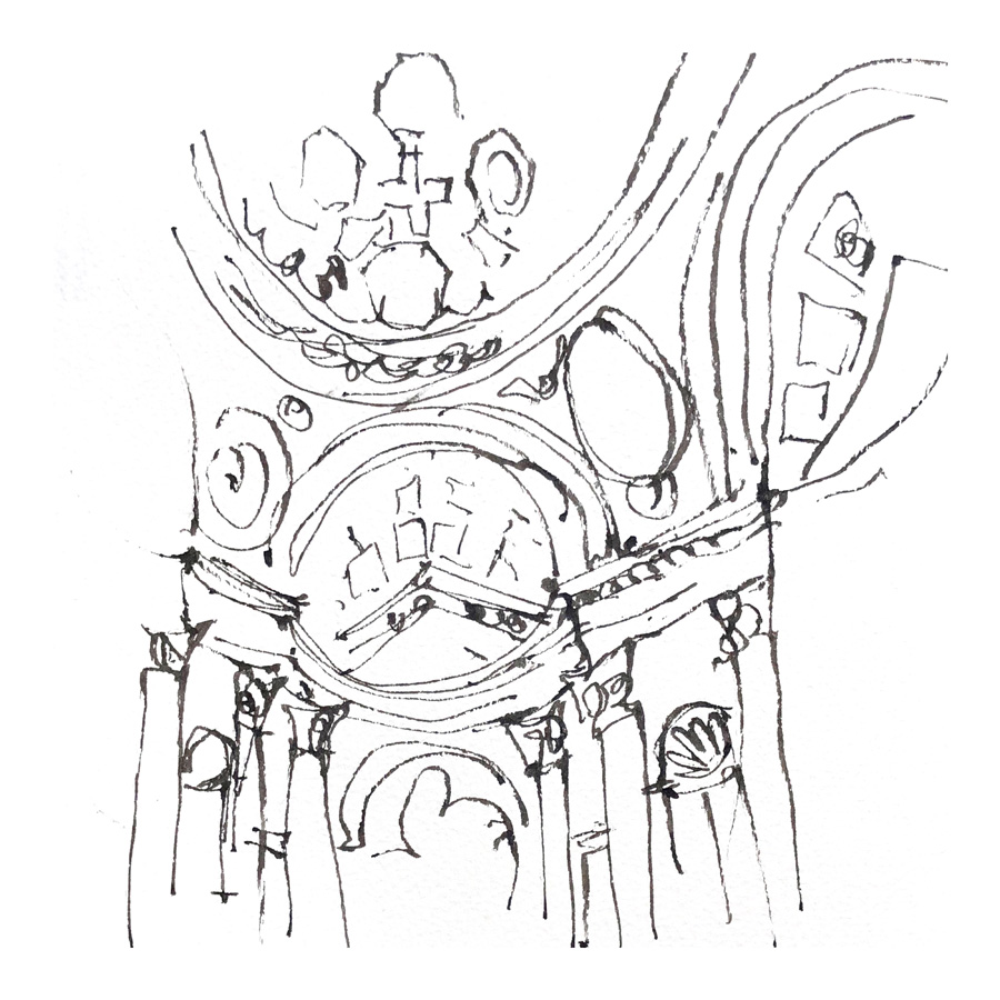 The interior blows me away every time I visit. More entablature chat and then we went in search of somewhere we could sit and sketch.