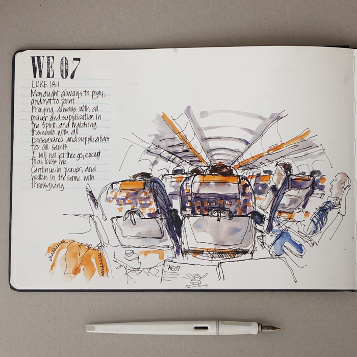 But, honestly it has been a total non-issue for me! I am not very dilligent about keeping my pens in a vertical position and I normally sketch during takeoff which is the time that Brian recommends not to use your pen!