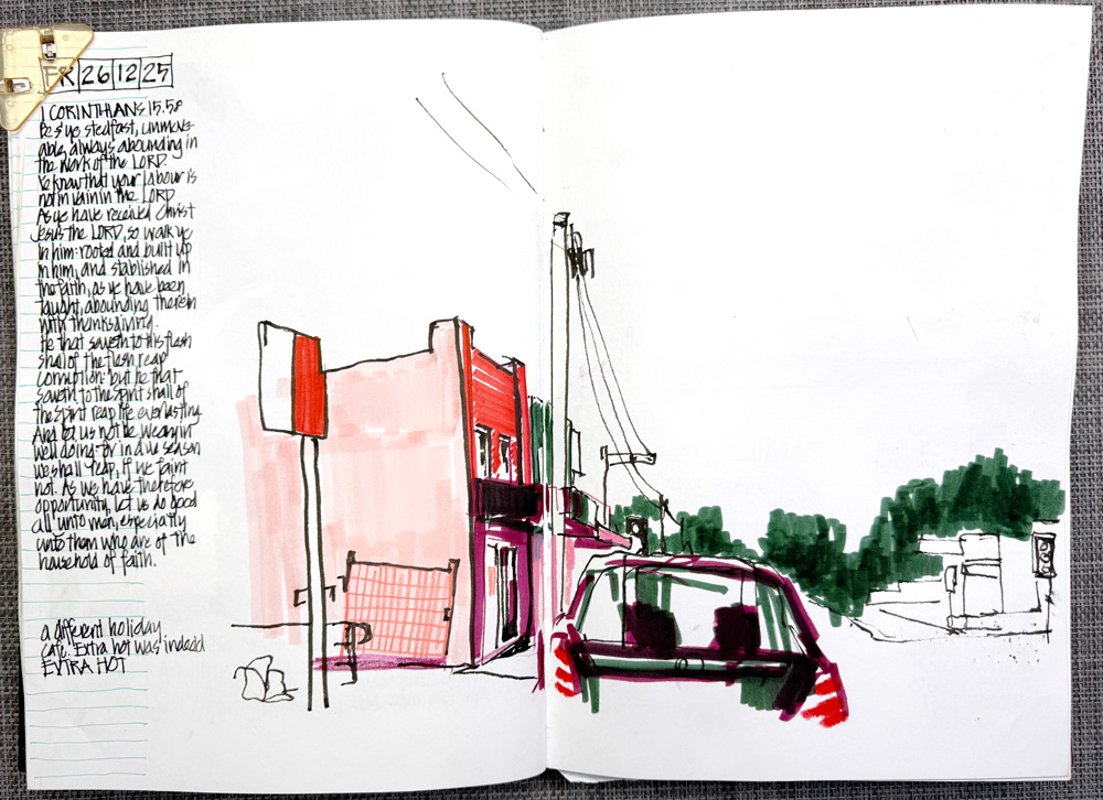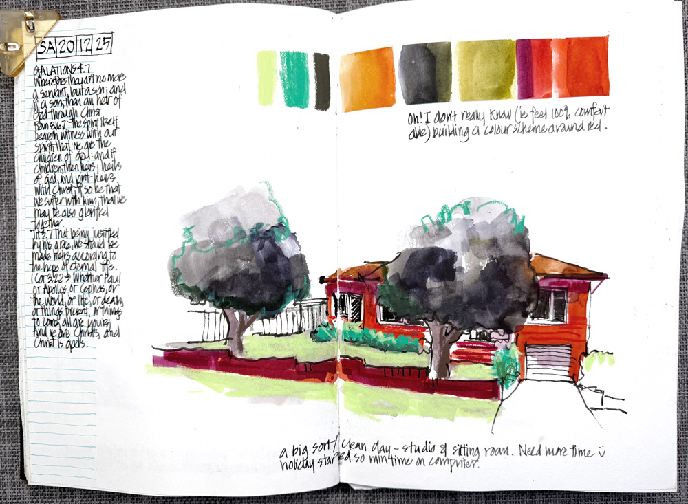 Obviously, it is a seasonal colour during December but it’s also my least-used hue! So I was looking forward to incorporating more red into my every day sketching.