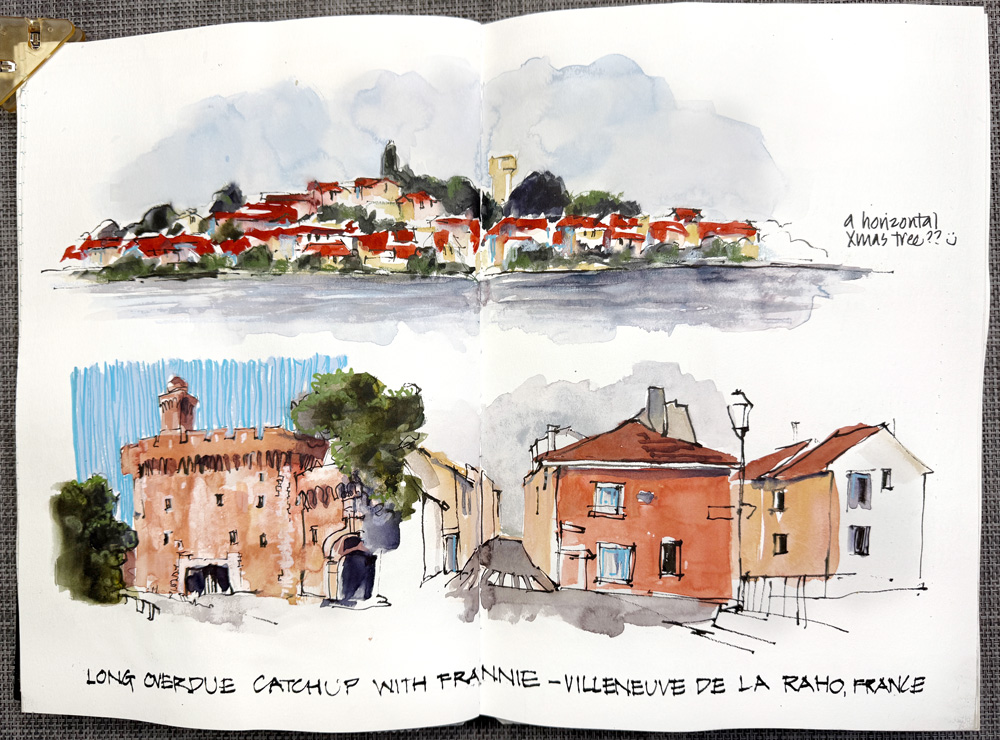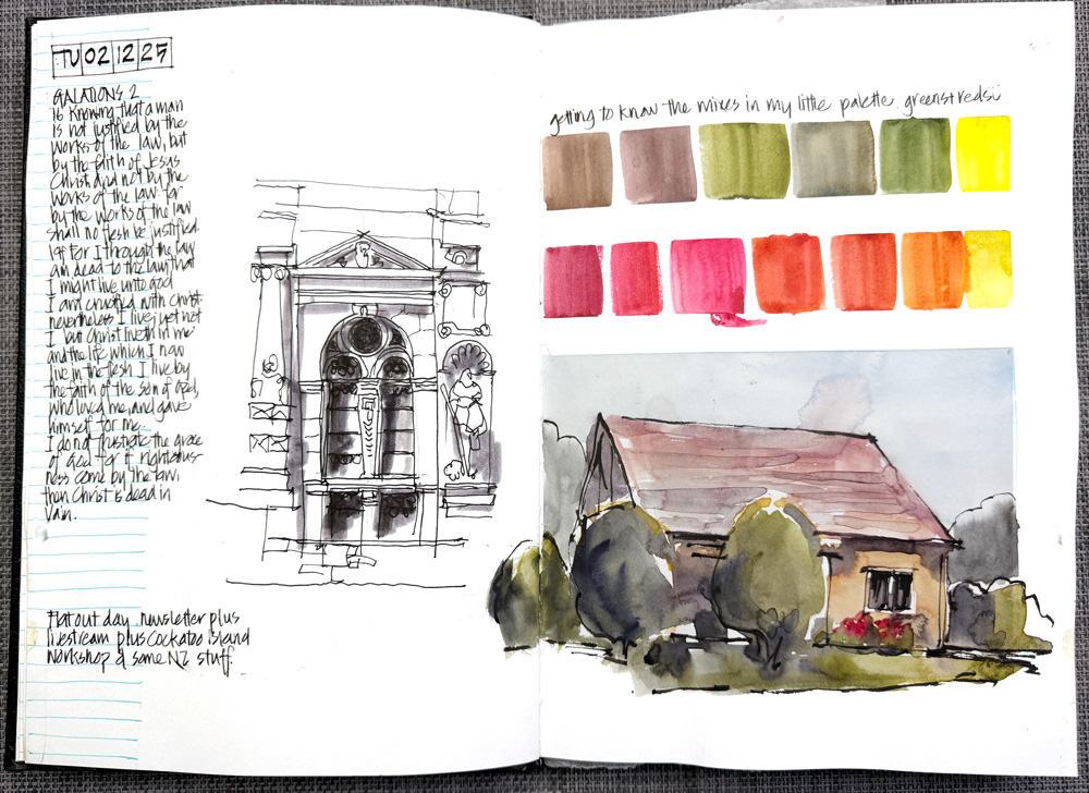 I made the decision to start using DS Pyrrol Scarlet as my warm red so in the second half of December I was getting to know how it works on its own (how to overcome its drying shift) and how it works in washes. Here are three sketches that I did while on a video call with my friend Francoise.