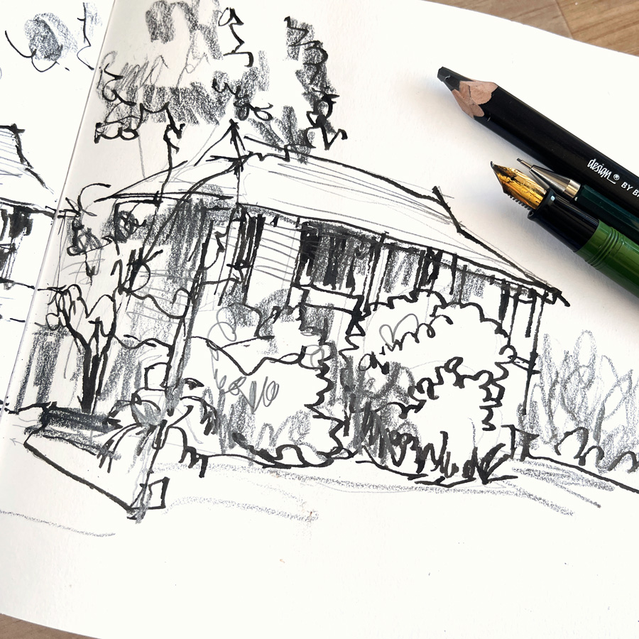The other day I only had a little time to sketch (dark overcast day and fading light) so I grabbed my favourite Sailor Fude de Mannen pen (55 degree nib) and started doing a quick line drawing.