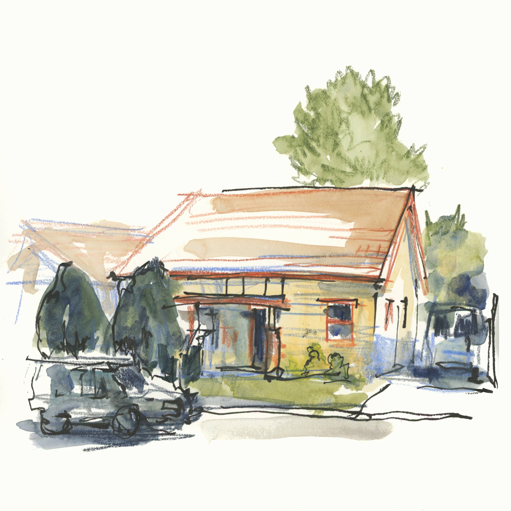Sketching local houses (and a new cafe)
