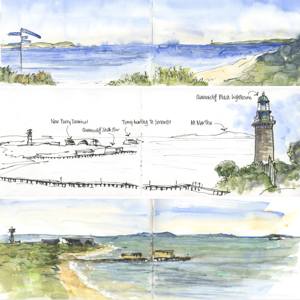 My friend E (who I was staying with) loves taking me on day outings whenever I visit Melbourne. She has been doing this since 2006 (before I started sketching) and these outings are always a highlight. On this trip, we went on two outings – the first to Queenscliff on a beautiful sunny winter’s...
