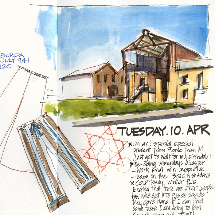 Another daily page. I am getting my food delivered at the moment so it is not my decision to have hot cross buns this week as well. This was a ‘lite bun’ but enjoyed very much by me. Also on the left having fun thinking about what I am doing… I was using partial continuous...