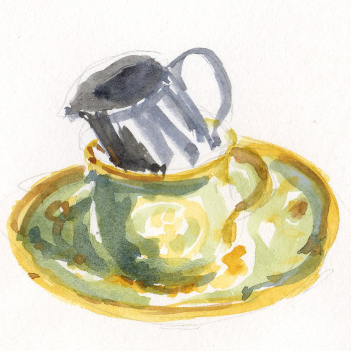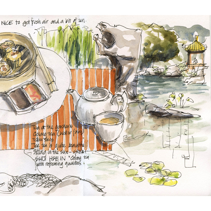 Two sketches from a visit from a friend… on both occasions I persuaded my friend to draw too and I will put these in my Remains of the Day journal which I use from time to time to record special occasions. Dinner at a Thai restaurant in the area – we had fun drawing...
