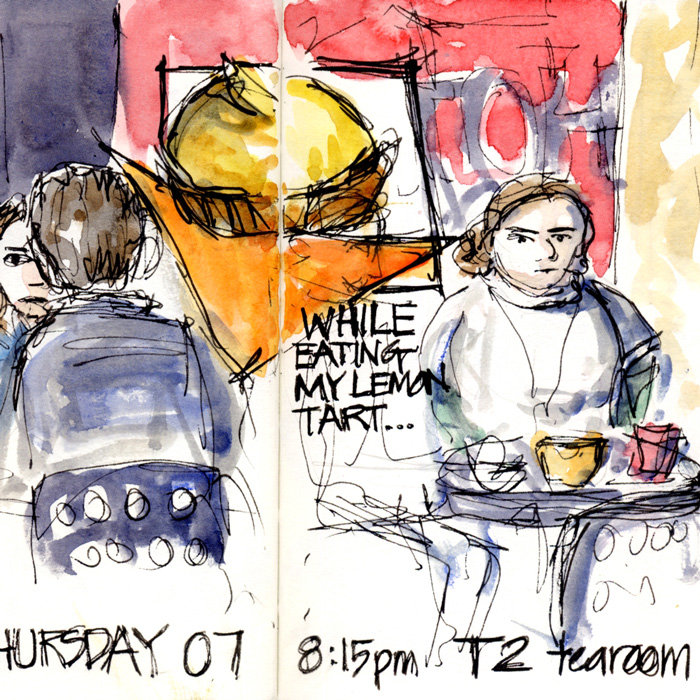 Here is my page that I did last night at my favourite tearoom. I didn’t quite finish the painting as they closed their doors and I thought I better leave. So I added the rest of the paint tonight. Yet again, a different pot, cup and saucer from last visit. The pot on the left...