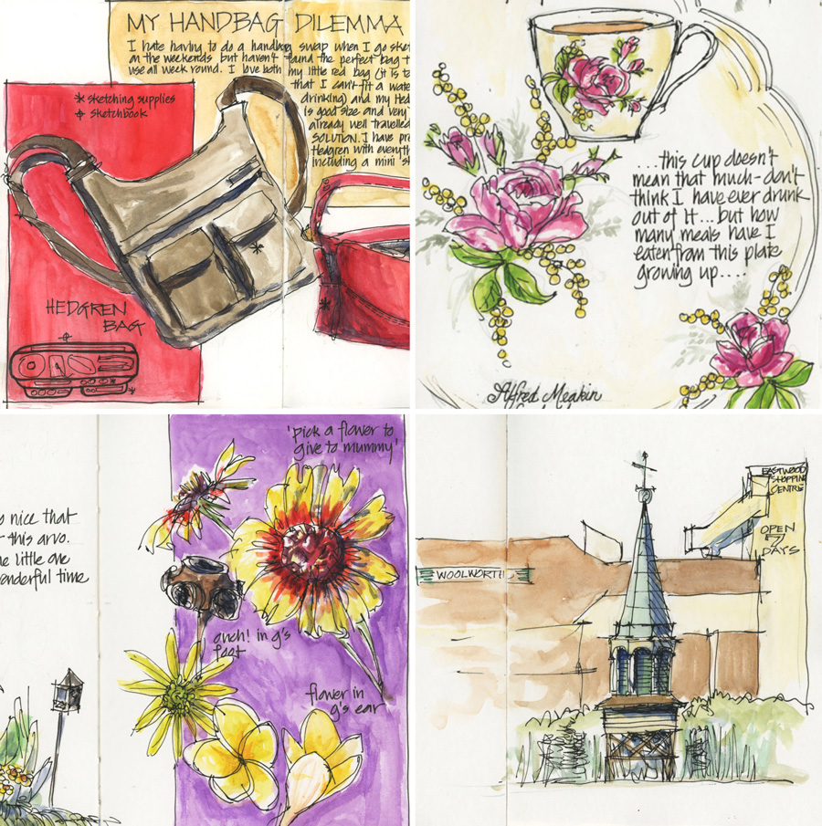 CONTINUE READINGHere is a collection of recent evening sketches – a lot using inktense pencils. I’ll post my inktense colour chart on Monday Just for the record I said few teacups…not none!