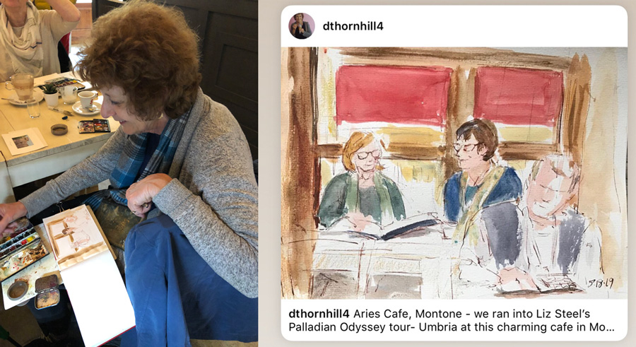 After lunch I had one-on-one sessions with everyone in Aries Cafe. At one point I looked up and there was Debbie from LA! She and husband were in the area and decided to pop into Montone. She sketched me doing one of my reviews – thanks Debbie.