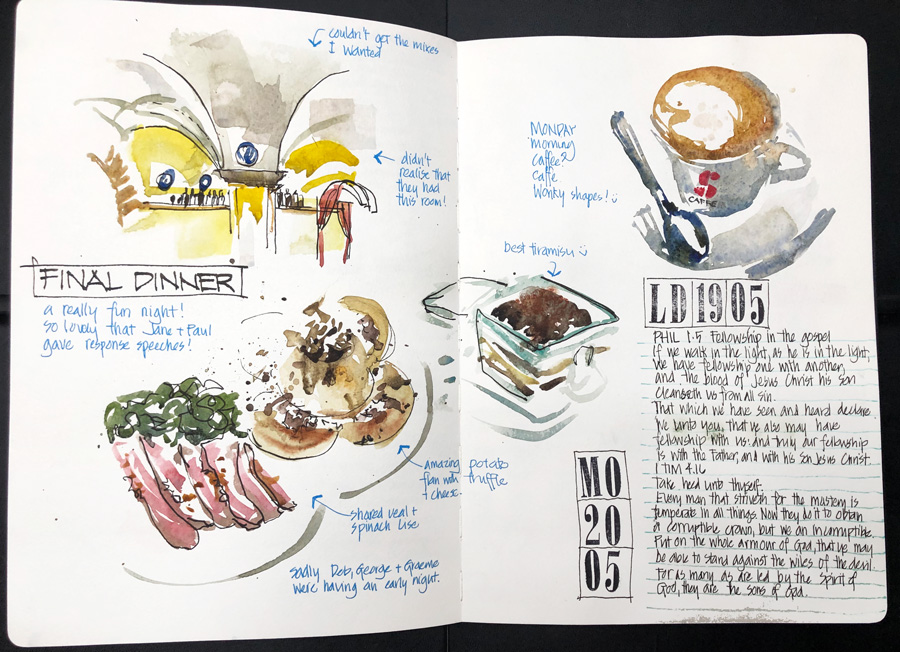 First night dinner at the amazing L’Antica Osteria – I sketched it this week!