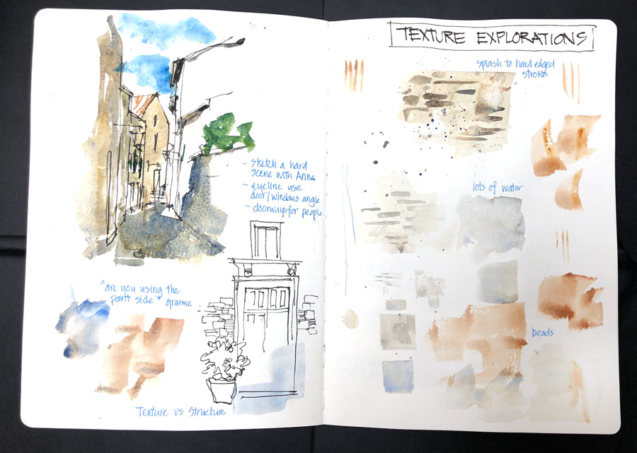 Final morning – working on sketchbook composition (cold and wet again so we were inside)